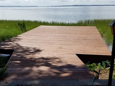 Cleaning and refinishing a Cumaru dock – another look at refinishing your hardwood deck.